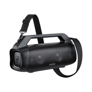 از نظر طراحی، Anker Soundcore Motion X500 دارای بدنه ای آلومینیومی و مقاوم در برابر آب با استاندارد IPX7 است، به این معنی که میتوانید آن را در شرایط مختلف مانند پیک نیک یا کمپینگ استفاده کنید، بدون نگرانی از آسیب دیدن به دلیل تماس با آب. همچنین، این اسپیکر به دسته ای ارگونومیک مجهز است که حمل آن را راحت تر میکند.
